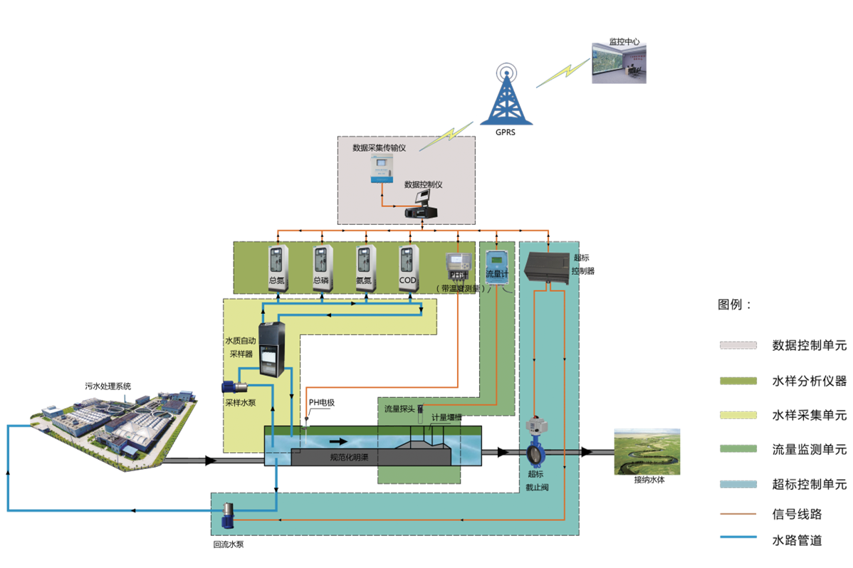 污染源水質(zhì)在線監(jiān)測系統(tǒng)適用于各排污企業(yè)對污染源水質(zhì)排污監(jiān)控及控制的需求。該系統(tǒng)根據(jù)2020年國家技術(shù)規(guī)范(HJ353-2019)和其他標(biāo)準(zhǔn)進(jìn)行設(shè)計,由實現(xiàn)水污染源流量監(jiān)測、水污染源水樣采集、分析及分析數(shù)據(jù)統(tǒng)計與上傳等功能的軟硬件設(shè)施組成的系統(tǒng)。該系統(tǒng)具有監(jiān)測數(shù)據(jù)實時采集、傳輸、管理、質(zhì)控、反控等功能,還具有水質(zhì)治理設(shè)施運行情況分析功能和排污總量控制功能。